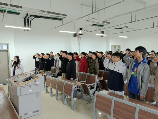 团课进入尾声,全体团员面向团旗肃立,举起右拳庄严宣誓。铿锵有力的誓言回荡在教学楼内,彰显着团员们践行民族团结的坚定决心。下一步,建筑工程学院将持续深化民族团结进步教育,引导广大团员青年将“石榴籽”精神内化于心、外化于行,在专业学习与社会服务中自觉做铸牢中华民族共同体意识的坚定维护者和积极实践者,凝聚起同心共筑中国梦的磅礴青春力量。