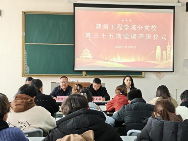 为深入贯彻习近平新时代中国特色社会主义思想,深入学习贯彻党的二十大和二十届二中、三中、四中全会精神,做好党员发展工作,建筑工程学院党总支于11月20日在5232教室举办第35期党课开班仪式。建筑工程学院党总支书记乔改伟、学生第一党支部书记卢克斌、团总支书记刘迪、专职组织员屈高阳、24级发展对象和25级入党积极分子参加,开班仪式由屈高阳主持。