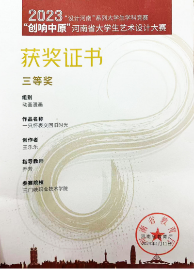 本次大赛分为“创响中原”艺术设计大赛、“智造中原”工业设计大赛、“建美中原”建筑设计大赛、“印记中原”乡村设计大赛四个赛项。乔芳老师指导学生作品《一只怀表交回旧时光》获得“创响中原”艺术设计大赛三等奖;,宋莎、王湘老师指导学生获得“建美中原”建筑设计大赛装配式深化设计赛项三等奖。