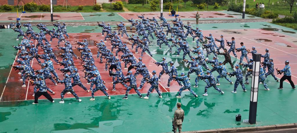 训练场上,同学们身姿挺拔似松,汗珠自额头滚落而下。他们从最基础的军姿训练开始,全身每一寸肌肉皆处于紧绷状态,彰显出坚韧不拔之毅力;随后进入整齐划一的正步训练环节,步伐坚定有力,气势雄浑壮阔。这正是建工学子们昂扬向上、永不言败精神风貌的生动体现,于训练场上绽放出耀眼光芒。