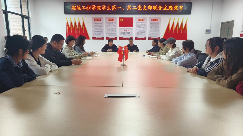 为深化理论学习,强化党员党性修养,9月26日中午,建筑工程学院学生第一、第二党支部在51225会议室联合举行了一场主题鲜明、内容丰富的主题党日活动。活动由学生第一党支部书记卢克斌主持,学生第一、第二党支部委员参加活动,2024级入党积极分子列席活动。