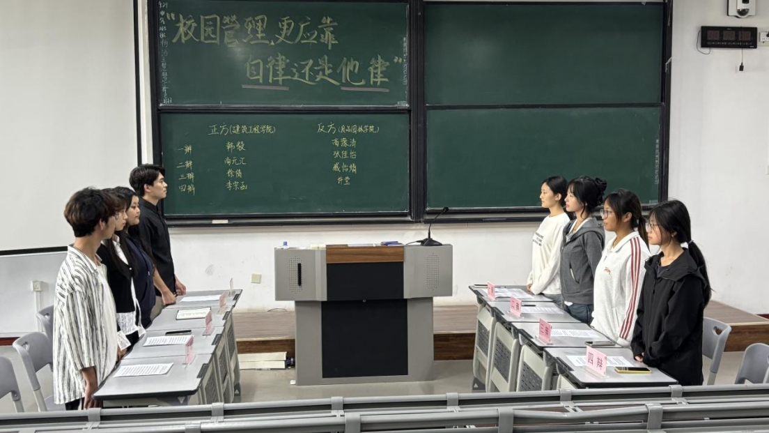 为深入学习贯彻习近平法治思想,提升师生法治素养与思辨能力。9月29日下午,建筑工程学院与食品园林学院联合举办一场以“校院管理,更应该靠学生的自律/学校的他律”为主题的辩论赛。