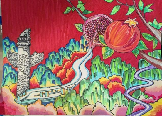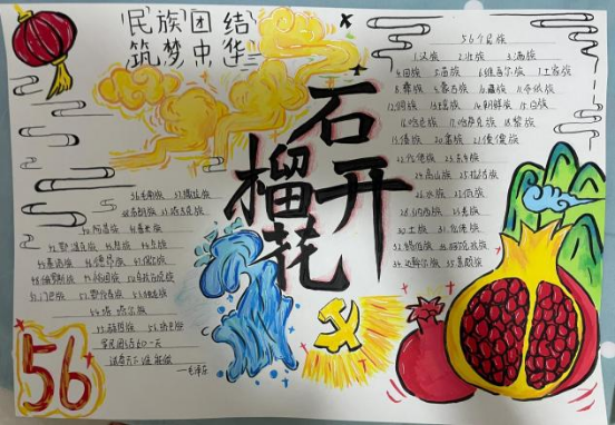 “石榴子一家亲”主题绘画展由建筑工程学院学生会主办,同学们以“民族团结”为主题,用斑斓的色彩生动描绘出各民族同胞手拉手、心连心的温馨画面,并巧妙以“石榴”为意象,象征各民族如石榴籽般紧紧相拥。每一幅作品都跃动着童真与创意,不仅深刻展现了学子们对民族团结的理解,更传递着对中华民族共同体澎湃的热爱。