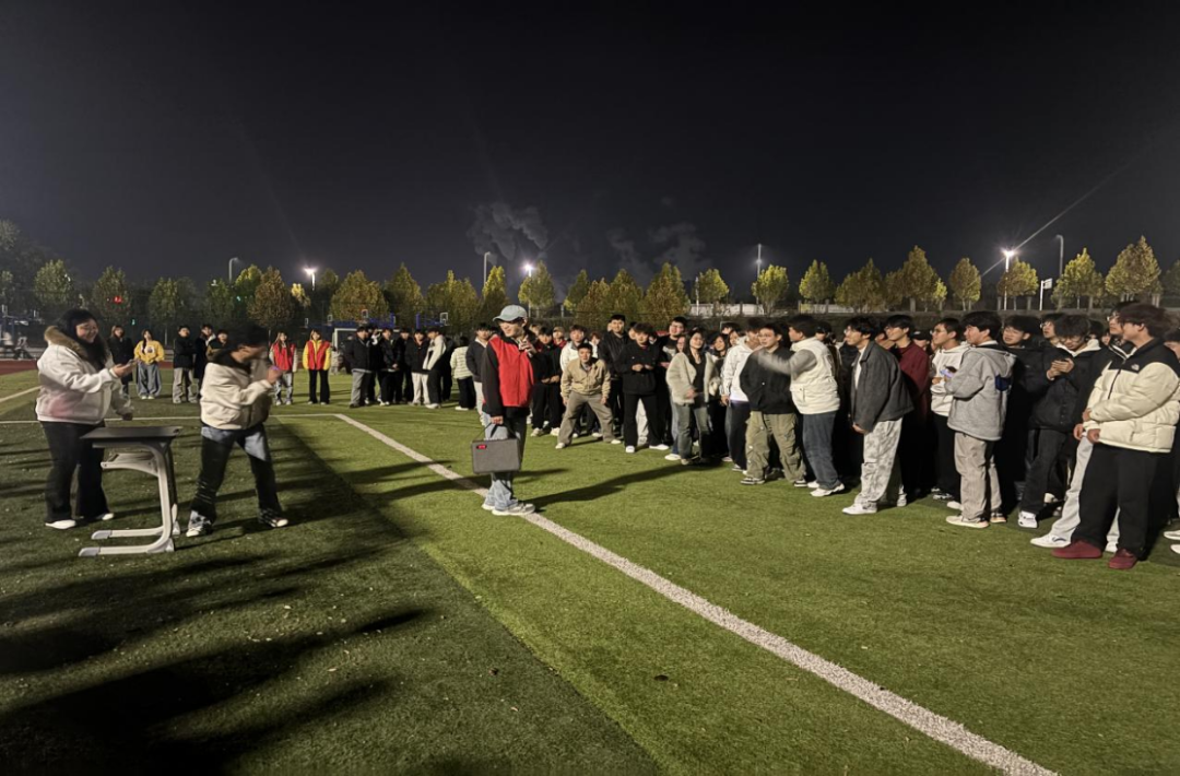 活动伊始,卢克斌以殷切寄语送上热情洋溢的美好祝福,激励同学们在户外集体活动中释放青春活力、展现个人风采。随后,韩毅与杨一帆献上精彩的暖场才艺表演,赢得观众如雷的掌声。主持人详尽阐述了比赛规则:赛事以班级为单位,通过“极速热身赛”和“班级对抗赛”两轮激烈比拼角逐冠亚季军;全程采用抢答模式,答题时间限制为20秒,超时自动弃权;积分实时公布,确保比赛公平、公正、公开。随着首轮“极速热身赛”拉开帷幕,经典老歌与热门金曲的动人旋律在南操场回荡,各代表队反应迅捷、配合默契,抢答环节紧张刺激又妙趣横生。班级助威团的呐喊声与欢呼声此起彼伏,为现场注入澎湃活力,将活动氛围一次次推向高潮,让走出宿舍的同学们尽情感受集体活动的无限欢乐。