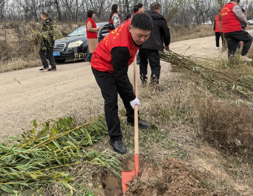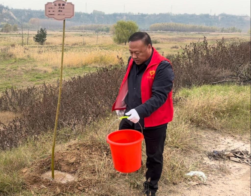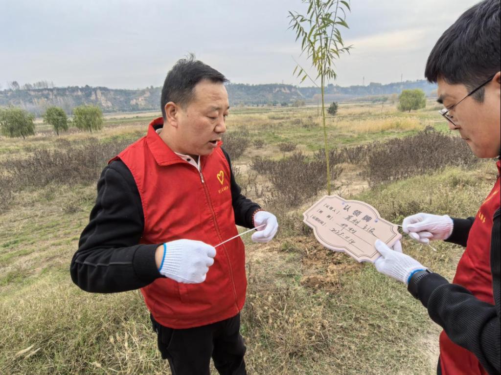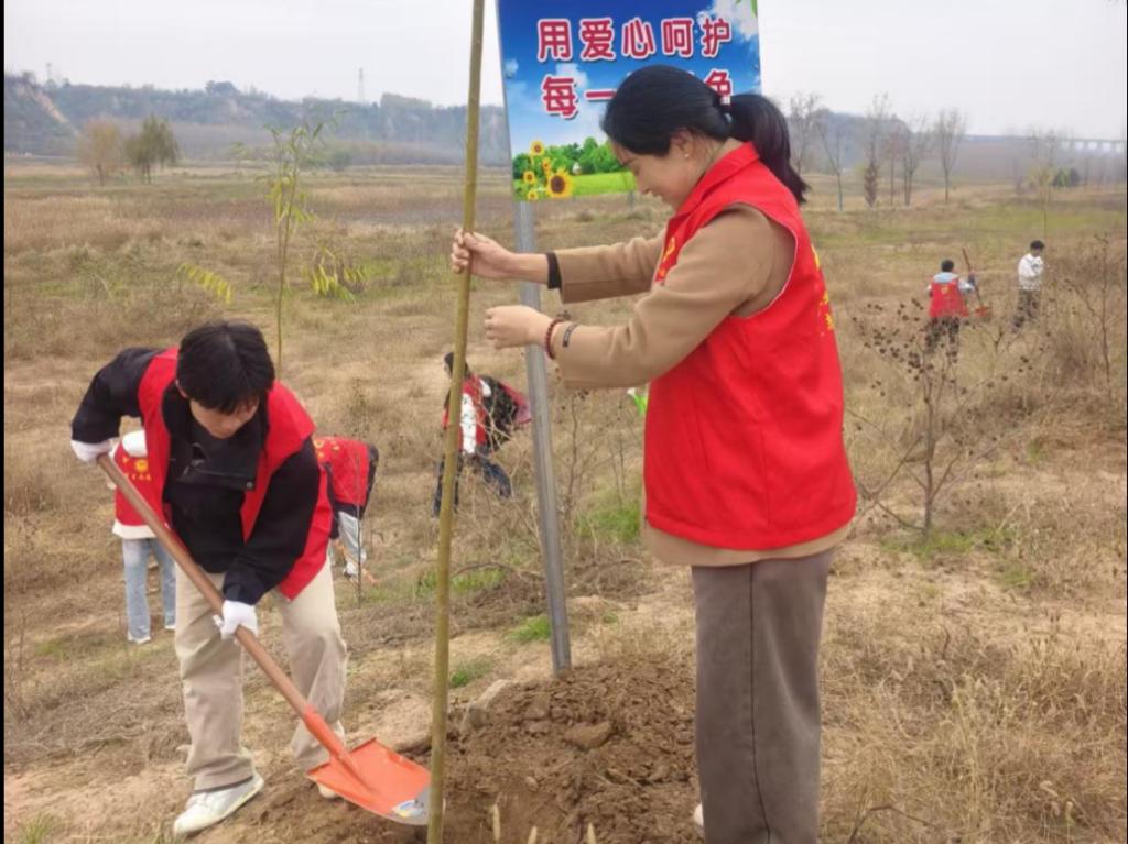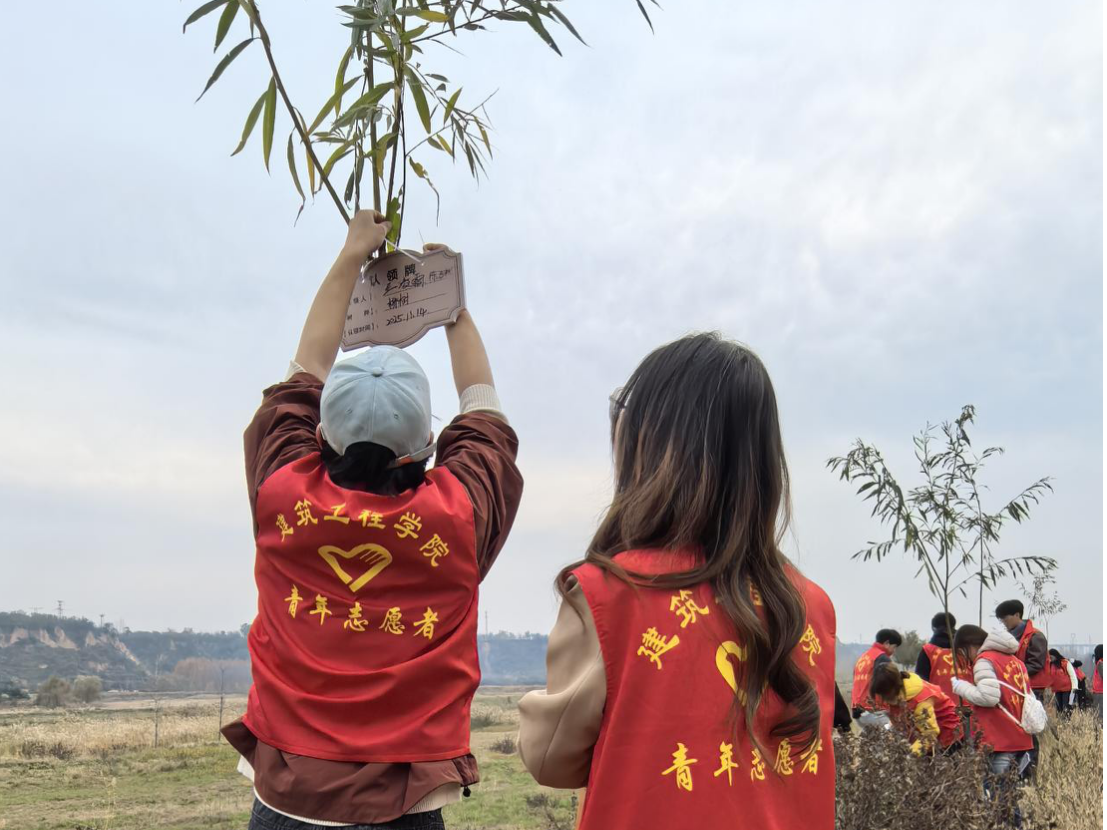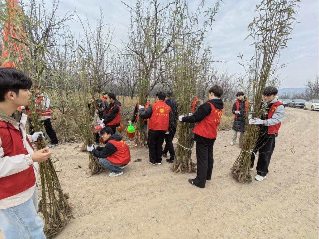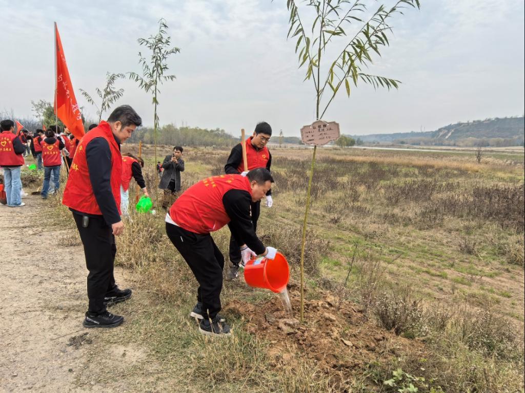 初冬正午,阳光温煦。黄河冯佐渡口岸边,建筑工程学院党总支、团总支学生会的80余名师生,与水电十一局九分局30余名党员骨干及沿河公路滩涂工作人员齐聚于此,共同投身这场意义深远的生态实践。活动现场旌旗招展,人头攒动,一派热火朝天的劳动景象跃然眼前。本次活动紧密围绕“清滩整治、绿植补栽”的核心内容展开。建工师生与企业青年在沿河公路滩涂工作人员的专业指导下,充分发挥建筑专业“景观设计”的技能优势,将所学应用于实践。大家分工协作,默契配合,挥锹铲土、扶苗填坑、培土浇水、挂牌认领,每一个步骤都一丝不苟。经过数小时的辛勤劳作,共计600棵新栽的柳树苗在黄河岸线迎风挺立,形成了一道崭新的绿色屏障,为初冬的黄河滩涂注入了勃勃生机。