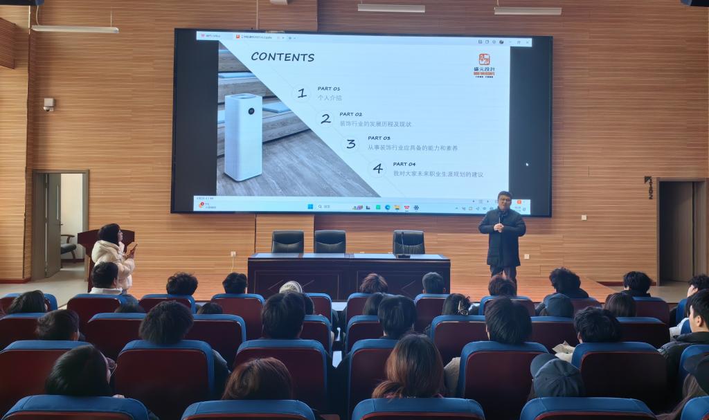 为进一步深化产教融合,提升建筑室内设计专业学生对行业发展趋势与职业路径的认知,2025年12月20日特邀三门峡盛元装饰设计有限公司总经理张军来校,为师生带来题为“装饰行业的变革与未来”的专题讲座。本次讲座旨在通过企业专家的实践经验分享,拓宽学生专业视野,增强职业规划能力,推动学院应用型人才培养质量的提升。